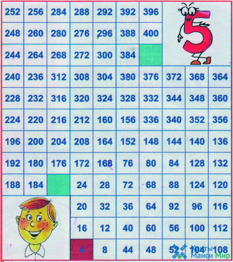 При выполнении этого задания вы сможете проверить скорость сложения цифр, начиная с цифры «4» и выше, каждый раз прибавляя по четыре. Крайняя цифра равна цифре «400». Вам нужно засечь время и определить количество минут, которое вам понадобится для того, чтобы дойти до конца пути.