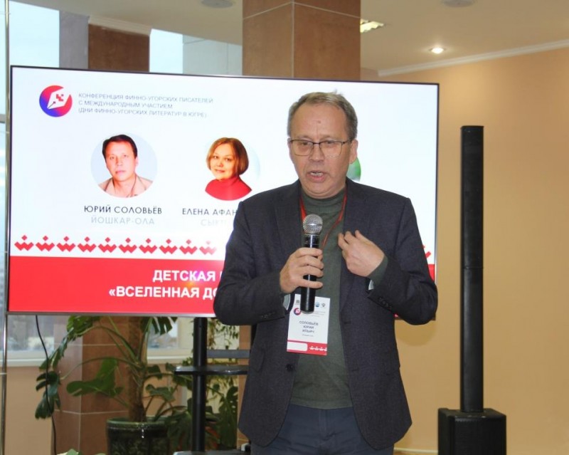 – До начала мероприятия в Республике Марий Эл уже шла подготовительная работа, кого выбрать делегатами от нас на Конференцию финно-угорских писателей. Я сейчас скажу только про троих людей. Это поэтесса Светлана (Григорьева) Архипова – председатель Союза писателей России Республики Марий Эл, поэт Игорь Попов – главный редактор нашего журнала «Ончыко» («Вперёд») и я – писатель-прозаик Юрий Соловьёв.