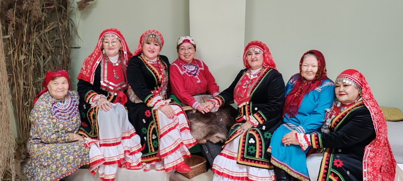 Он собрал гостей разных национальностей ханты, манси, татары, башкиры в национальных костюмах, которые встречали нас, гостей, традиционными песнями и танцами.