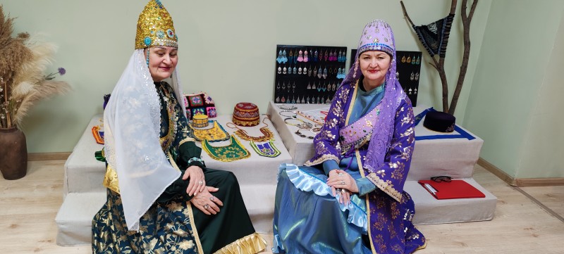 Усть-ишимские татары представили выставку из традиционных изделий, которые были выполнены с соблюдением всех канонов – это женские и мужские головные уборы, а также различные украшения. Участники выставки дефилировали в красивых нарядах собственного изготовления.