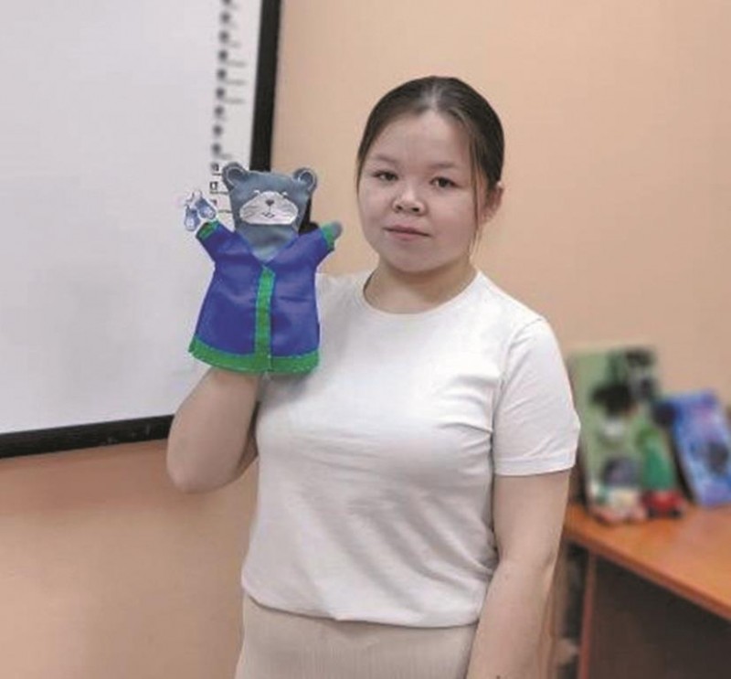 Студенты Карина Сорокина и Даша Кинямина подготовили и показали детям добрый и поучительный спектакль, используя перчаточных кукол. Важным элементом действия стало то, что все диалоги героев звучали на сургутском диалекте хантыйского языка. Следует отметить, что перчаточные куклы (петрушки) – это вид театральных кукол, надевающихся на руку, как перчатки. Использование кукол-перчаток способствует развитию у детей внимания, памяти и развитию речи.