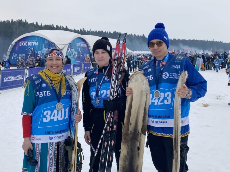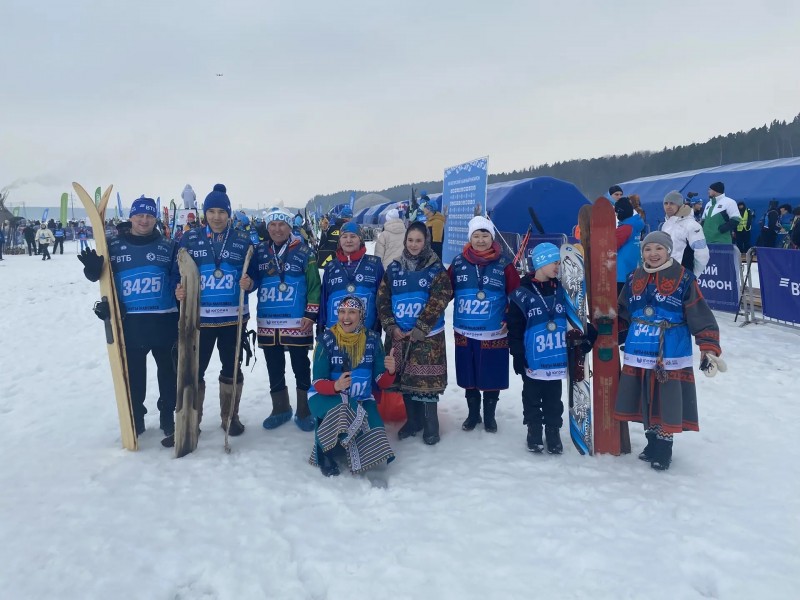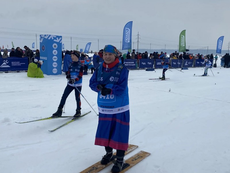 Особое место в программе марафона традиционно занял этнозабег. На дистанцию 500 метров вышли представители коренных малочисленных народов Севера − ханты, манси и лесные ненцы. Они соревновались в национальных костюмах и на традиционных охотничьих лыжах − подволоках (камусных лыжах).