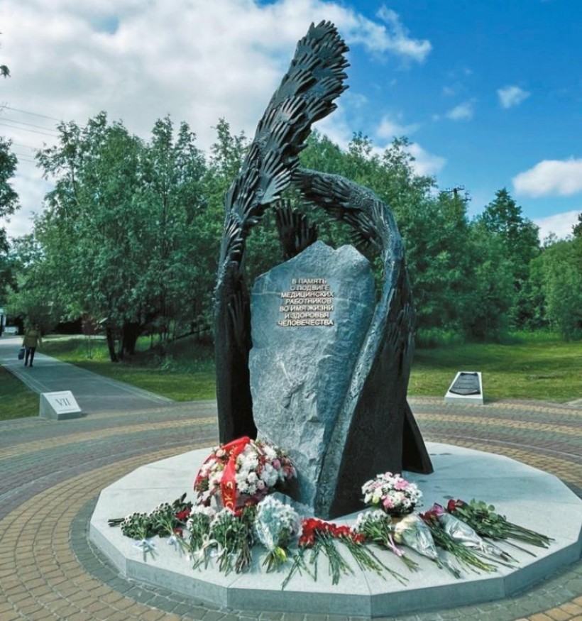 15 июня 2025 года в Сургуте в сквере «Старожилов» открыли памятник медицинским работникам. Скульптурная композиция представляет собой камень, обвитый тремя ангельскими руками-крыльями. Инициатива создания памятника принадлежит главе города Максиму Слепову и профсоюзу медицинских работников.