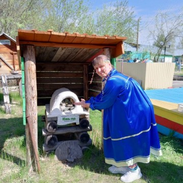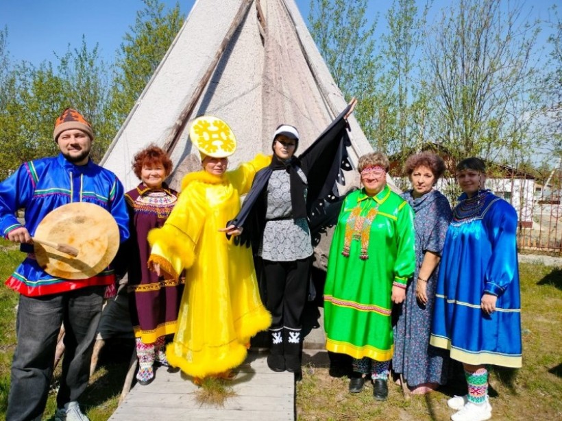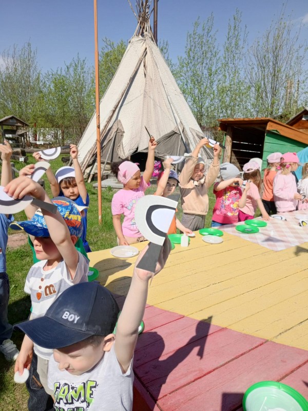 «Ну, тогда нужно громко позвать Солнце, чтобы оно вышло и осветило нашу землю». Послышались звуки санквылтапа, и к детям вышло яркое Солнце. В этот день в образе Небесного светило была педагог детского сада «Ромашка» Елена Заболотова. Она является педагогом дополнительного образования и знакомит детей дошкольного образовательного учреждения с обско-угорской культурой и учит ребят бисероплетению.