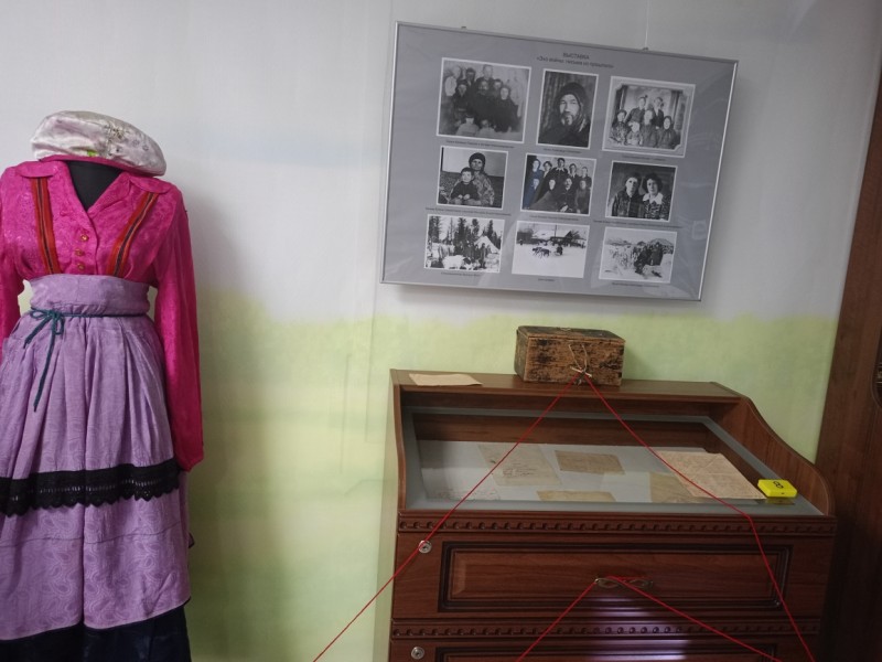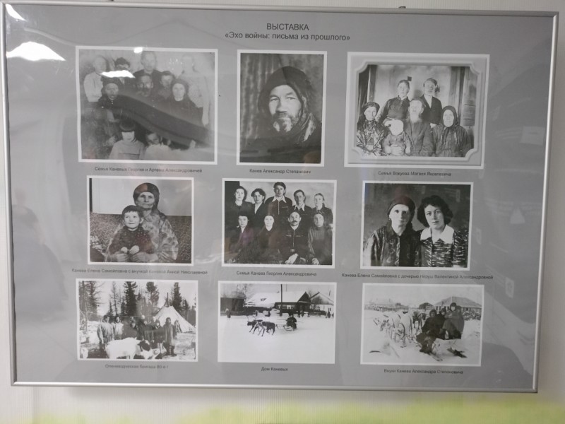 Экспозиция выстроена на предметах военного времени и письмах фронтовиков – братьев из зырянской семьи Каневых из села Казым. Это Артём Александрович и Георгий Александрович, они были призваны на войну с Казымского сельского совета, одного забрали в 1941 году, второго в 1942 году. Как и их родители оба занимались оленеводством.