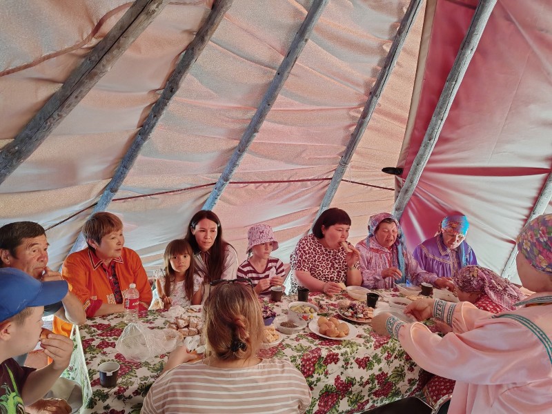 Калерия Супрун и Виктория Юхлымова исполнили песню День Победы на мансийском языке. После концерта всех гостей пригласили отведать вкусную уху и ароматный чай из разных трав и ягод.