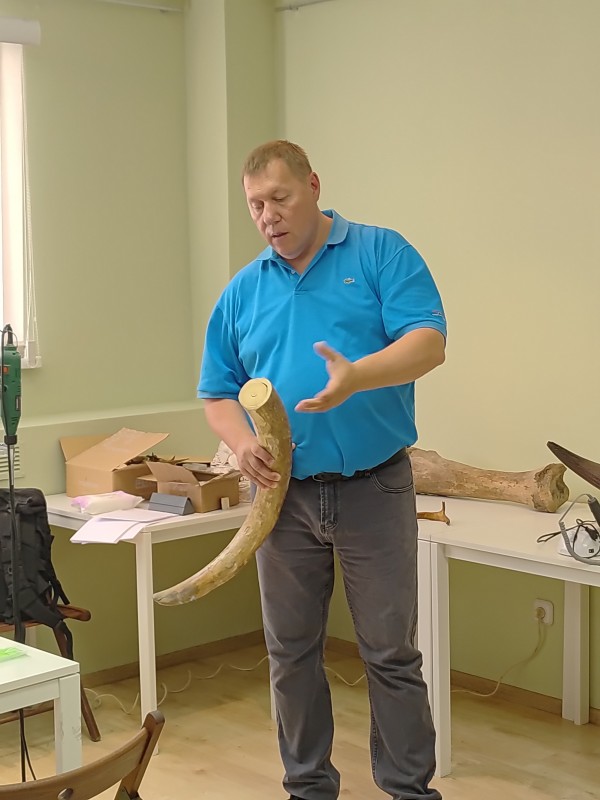 На обучающий семинар приезжал Антон Тимофеевич Тайбин, по национальности он ханты. Мужчина вырос на стойбище и активно принимает участие в традиционных национальных праздниках. Антон Тимофеевич с радостью откликнулся на призыв приехать на обучающий семинар по резьбе из кости, так как он давно хотел освоить это ремесло.