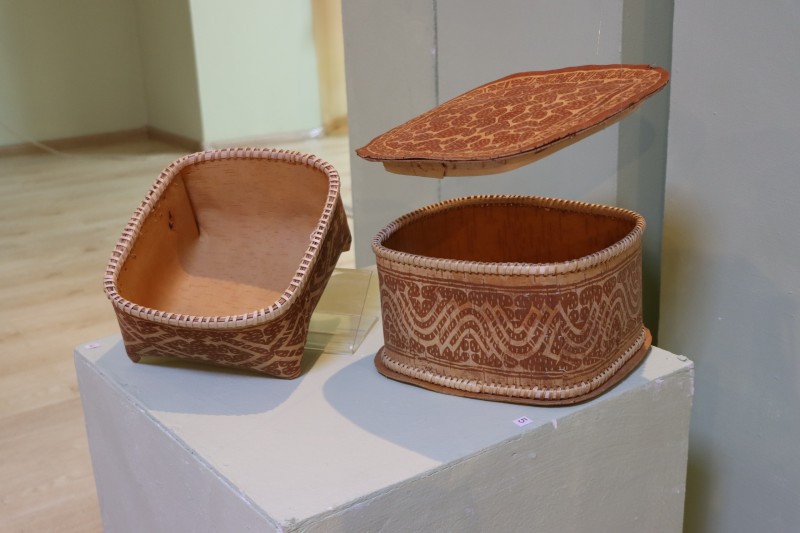 В Центре ремесел в это время проходила выставка берестяных изделий, где гости могли увидеть древнейшие сосуды и берестяные короба. Несмотря на схожие формы, каждое изделие имело свои локальные особенности в декоре, позволяющие определить мастерскую по почерку мастера – будь то Казым, Вах или Обь.