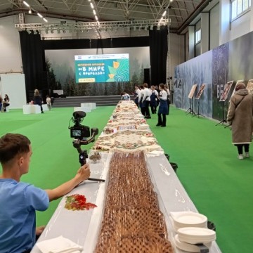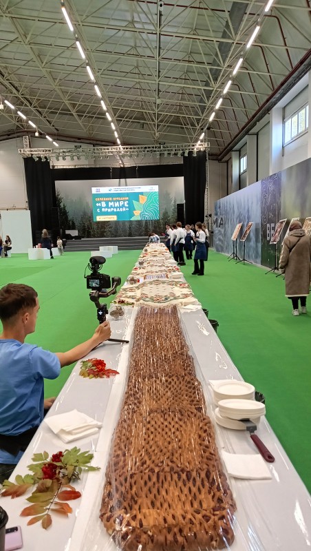 Особое внимание гостей привлёк 22-метровый ягодный пирог. Управляющий кофейней-пекарней Владимир Гулидов рассказал рецепт: «Пирог приготовлен из слоёного дрожжевого теста с начинкой из местной брусники. Пекари сначала испекли отдельные части, потом соединили их в одно длинное изделие. Наши профессионалы успешно справились с этой задачей».