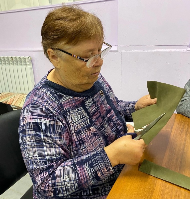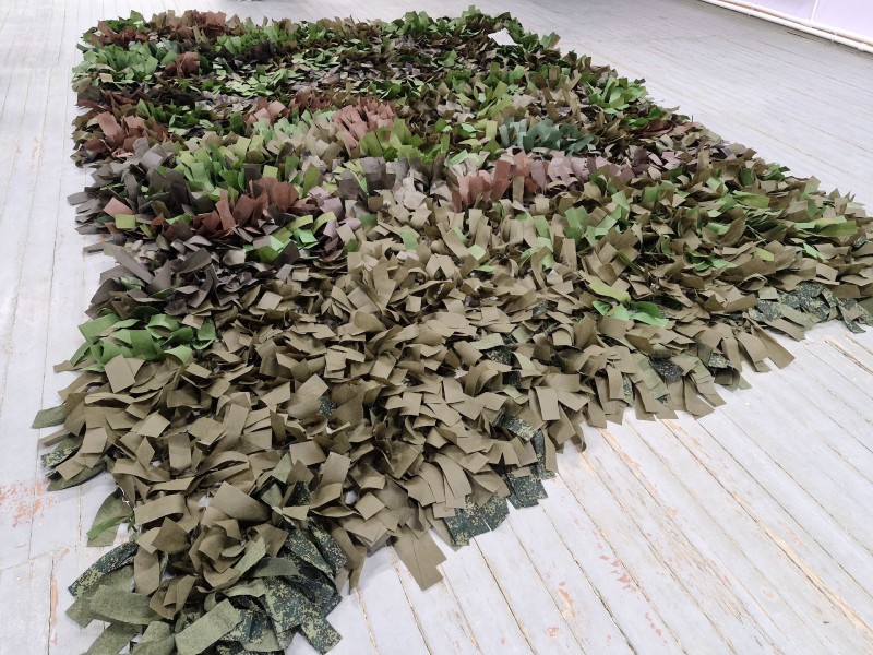Мы сотрудничаем с общественной организацией «Барс» из Кондинского района, которая снабжает нас тканями и парафином. Маскировочные сети делаем большими – шесть метров в ширину и двенадцать в длину. Вся команда выходит работать и за пару дней изготавливает сеть. Несколько волонтёров нарезают полоски, остальные плетут. Сети мы покупаем в интернете. Особую помощь нам оказывает Анатолий Константинович Кауртаев, наш мастер, умеющий насаживать ячейки, чтобы сеть держала форму и легко растягивалась. Он – пенсионер, бывший работник рыбпрома, и мы очень рады, что он с нами.