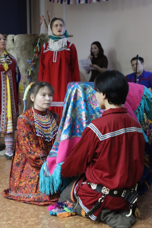 Так в конце прошлого года в институте народов Севера РГПУ им. А.И. Герцена состоялся студенческий конкурс «Лучшая хозяйка очага-2025». Он проходит в рамках плана реализации основных мероприятий по проведению в 2022-2032 годах в Российской Федерации Международного десятилетия языков коренных народов. На этом конкурсе самые талантливые студентки-северянки соревнуются в знании традиционной культуры и родного языка. В том году выбрали тему «Мужчины моего рода», потому как конкурс посвящён был Году защитника Отечества и 80-летию Победы в Великой Отечественной войне. Участие приняли пять студенток института народов Севера, представительницы прекрасного пола были из рода ненцев, манси, долган, коряков и русских. Отметим, что все девушки талантливо и достойно представили свою национальность на различных этапах конкурса, где им предстояло и спеть, и станцевать, и угостить приготовленными традиционными блюдами. В театрализованных постановках каждой помогали сокурсники и руководитель.