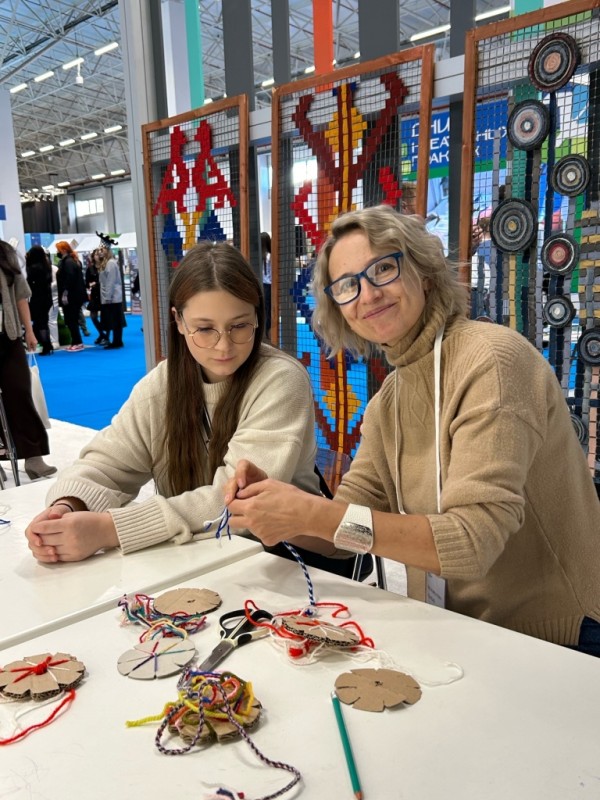 – Добрый день, меня зовут Лилия Викторовна Беловолова. Я приехала из Лянтора Сургутский район. Работаю в детском учреждении "Центр детского творчества" педагогом дополнительного образования. Преподаю детям основы шитья и декоративно-прикладного творчества. Здесь представляю свои уникальные ручные работы – сумки, тучаны, шоперы и аксессуары с хантыйскими узорами. На данный момент провожу мастер-класс по плетению фенечек.