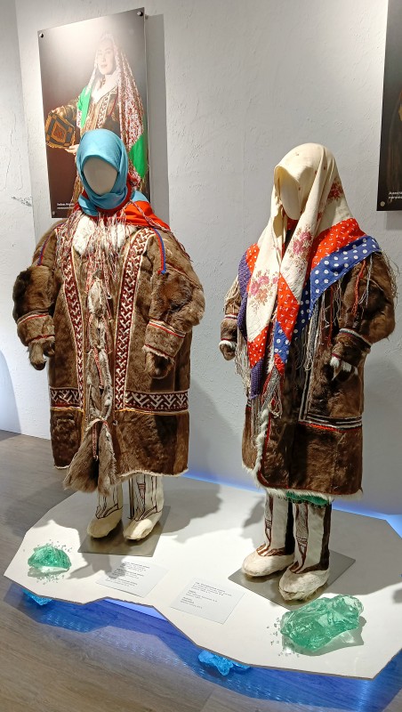 В музее представлены 24 модели традиционной женской меховой одежды с обувью и платками коренных жителей округа и народа коми-зырян. Среди них есть две мансийские сахи («меховые шубы»), шили их мастерицы из посёлка Сосьва Берёзовского района в 1960-1970-х годах – Яптина А.М. и Качанова Ф.Ф.