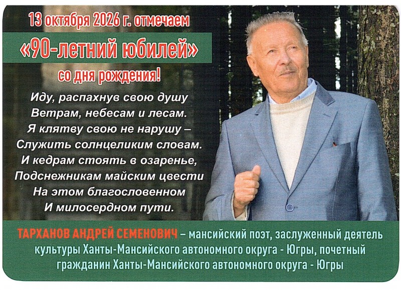 В Ханты-Мансийске в стенах Государственной библиотеки Югры прошёл вечер памяти удивительного человека, творчество которого наполняет югорчан особой атмосферой. Вспоминали мансийского поэта Андрея Семёновича Тарханова, 13 октября ему исполнилось бы 89 лет. После ухода таких людей, город кажется опустошенным, но остаются светлые воспоминания о них, с которыми приятно поделится друг с другом.