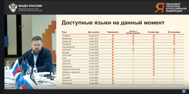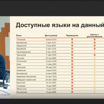 Цифровизация вместе с IT-технологиями в сохранении, развитии и популяризации национальных языков России имеют особый акцент в программе форума. Об этом как о стратегической значимости сохранения языкового многообразия в контексте цифрового развития в основном докладе выступил заместитель руководителя ФАДН России Станислав Бедкин. Так по реализации проекта по внедрению языков народов России в сервис «Яндекс.Переводчик» уже 18 языков имеют возможность переводов текста и речи.