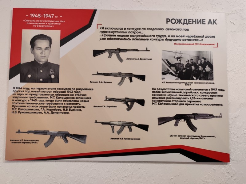 Имя Михаила Тимофеевича Калашникова широко известно во всём мире, как гениального советского конструктора в истории стрелкового оружия и символом инженерной мысли прошлого столетия. «Легендарный Калашников» – так называется выставочный проект, который под духовой оркестр культурного центра УМВД России по Югре и юных армейцев открывали на днях в музее «Природы и Человека» в Ханты-Мансийске. Выездная выставка из города Ижевска Республики Удмуртия представлена музейно-выставочным комплексом стрелкового оружия имени М.Т. Калашникова.