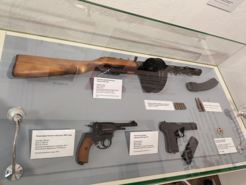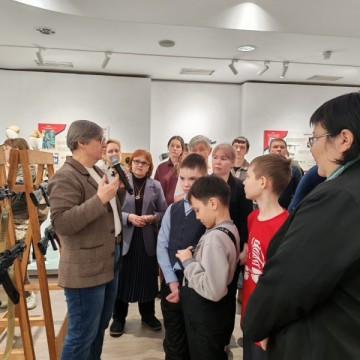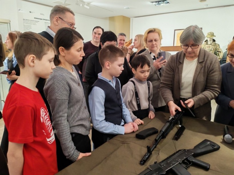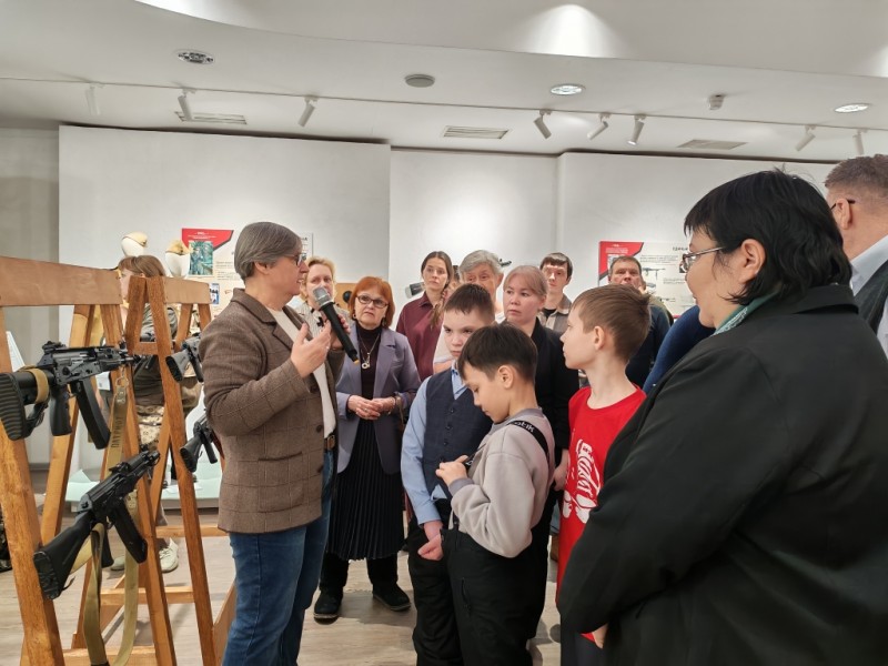 Затем гости из Ижевска и в то же время хозяева выставочной экспозиции провели познавательные экскурсии. Лада Михайлова, заведующая выставочным отделом музея М.Т. Калашникова, рассказала о семье и показала личные вещи и фотографии легендарного конструктора, представила рассекреченные документы, образцы знаменитого оружия и обмундирования.