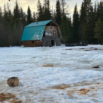 В первый день поездки мы выехали на «Буране» из Ушмы в другое мансийское поселение Турват. На улице весна, дорога начала местами таять, появились лужи. По пути остановились у базы Ильича – это изба в лесу, там останавливаются туристы. Немного отдохнули и продолжили свой путь в деревню Турват. В этой деревне проживает одна семья Самбиндаловых. Они ведут традиционный образ жизни. Там переночевали и на следующий день отправились дальше в деревню Лепля.