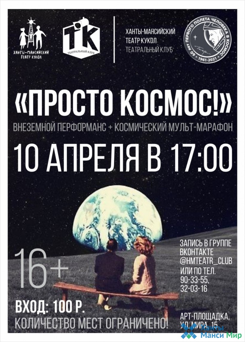 К 60-летию первого полёта человека в космос 10 апреля в 17.00 Театральный клуб Ханты-Мансийска открывает свой V юбилейный сезон неземной встречей «Просто космос!» (16+).