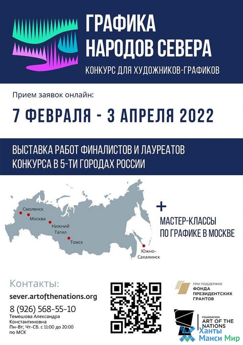 Фонд "Искусство наций" (г. Москва) в рамках проекта "Графика народов Севера" анонсирует проведение конкурса для художников-графиков Крайнего Севера, Сибири, Дальнего Востока, а также для представителей народов, населяющих данные территории, но в момент проведения конкурса находящихся за их пределами.