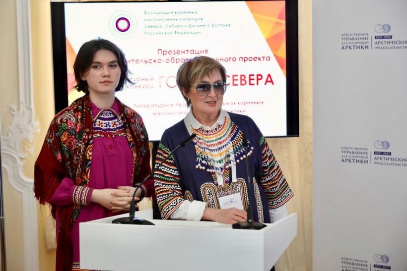 Вице-президент по вопросам образования и проектной работе Ассоциации коренных малочисленных народов Севера, Сибири и Дальнего Востока Нина Глебовна Вейсалова с интересом и гордостью рассказала всем, что “Голос Севера” – это масштабный литературный конкурс среди начинающих авторов на языках коренных малочисленных народов Севера, Сибири и Дальнего Востока. В ходе мероприятия были награждены дипломами победители конкурса. Марина Афанасьевна Рачинская сообщила, что из 68 заявок от участников отобрали 64. Все писали стихотворения, рассказы на своих родных языках с переводом на русский. Победителями стали как дети, так и взрослые. Большую работу по подготовкеданной Литературной гостиной и сборника произведений «Голос Севера» провели Чернышова Светлана Леонидовна, председатель Санкт-Петербургского отделения Ассоциации.