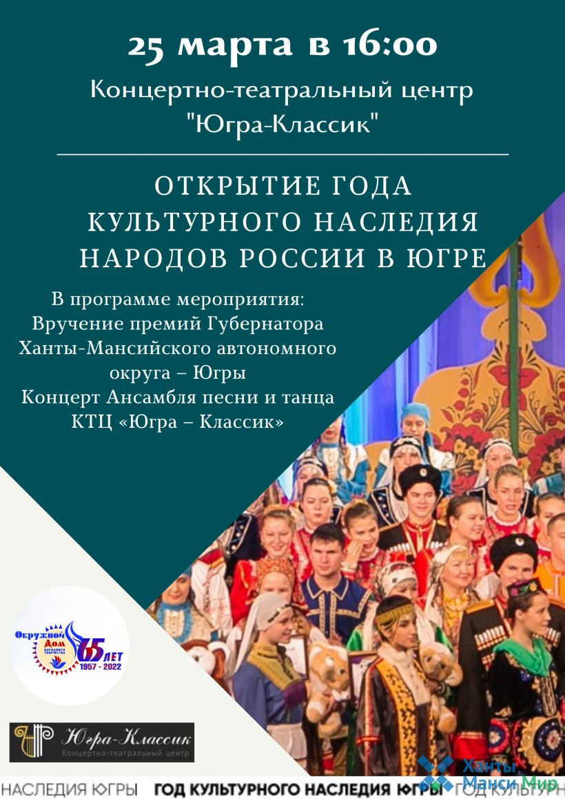 25 марта 2022 года в 16:00 в концертно-театральном центре «Югра-Классик» состоится торжественная церемония открытия Года культурного наследия народов России.