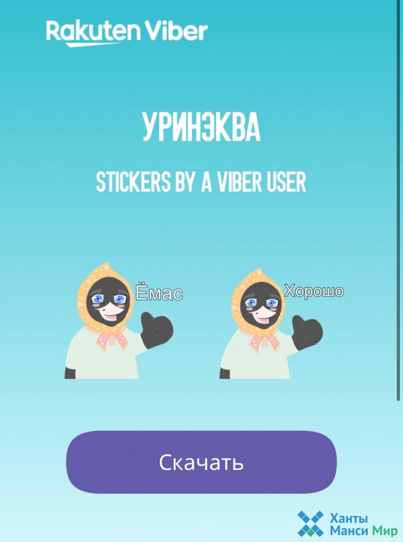 Пользователи мессенджера Viber теперь могут делиться стикерами с персонажами фольклора обских угров и словами на языках коренных малочисленных народов Севера. Стикерпак создали ученики муниципального бюджетного учреждения дополнительного образования «Детский этнокультурно-образовательный центр» (г. Ханты-Мансийск) из группы «Витсам». Им помогла студентка Ханты-Мансийского технолого-педагогического колледжа, выпускница образовательного центра Светлана Колова, доработав рисунки в графическом редакторе.