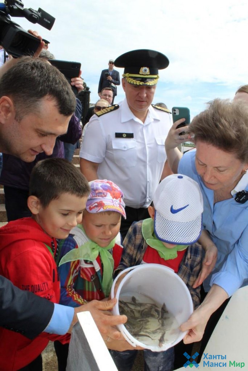 Сегодня, 21 июля, в Ханты-Мансийске на территории набережной состоялось мероприятие по выпуску молоди сибирского осетра в реку Иртыш, в котором приняли участие губернатор Югры Наталья Комарова с юными натуралистами и глава окружной столицы Максим Ряшин. Так, было выпущено около 140 тысяч мальков осетра весом не менее 3,0 граммов.