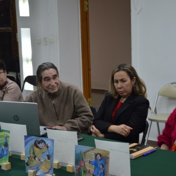 Журналисты Людмила Гурьева и Тамара Мерова познакомили студентов с газетами на хантыйском и мансийском языках «Ханты ясанг» и «Луима сэрипос», рассказали о работе журналистов национальной редакции, об особенностях интервьюирования коренных жителей, об этике, которую необходимо соблюдать при беседе, о чём можно спрашивать, а о чём нет и т.д. Также рассказали об опыте работы с детьми и молодёжью, в частности, о проекте «Юный корреспондент», который начался с 2015 года. Кроме этого, редакция ежегодно проводит творческие конкурсы, в настоящее время продолжается видеоконкурс «Сначала была сказка…». Студенты задавали вопросы, их интересовало, достойные ли зарплаты у журналистов национальной редакции. На что мы ответили, что по окружному закону, все специалисты округа, работающие по сохранению и популяризации родных языков коренных народов Югры, получают доплату в размере 25 %, это хороший стимул для работы и в нашей редакции.