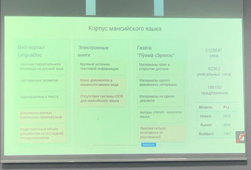 Научный сотрудник обско-угорского института прикладных исследований и разработок Ирина Молданова в своём докладе отметила, что большая часть молодёжи из числа народов ханты и манси уже не знает родного языка: