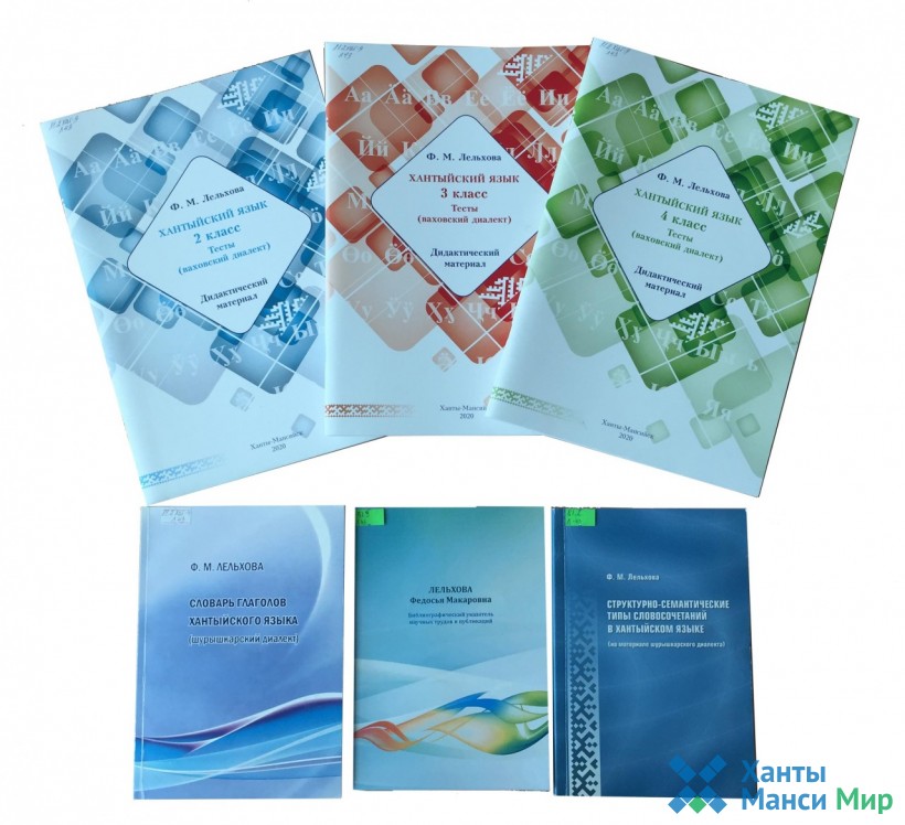 На выставке представлены книги «Структурно-семантические типы словосочетаний в хантыйском языке» (2011), «Словарь глаголов хантыйского языка» (2012), учебно-методические издания: Сборник олимпиадных заданий 2016 (Ваховский диалект), Сборник олимпиадных заданий 2017 (лесной диалект), Хантыйский язык 3 класс Тесты (ваховский диалект) 2020, Хантыйский язык 4 класс Тесты (ваховский диалект), Хантыйский язык 2 класс Тесты (ваховский диалект) статьи из научных сборников.