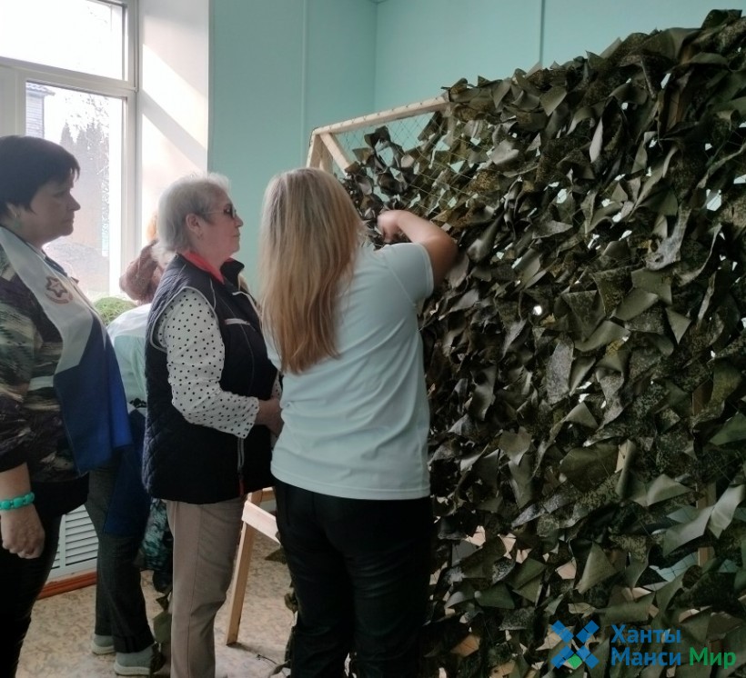 После викторины, пока готовился праздничный стол, желающих пригласили попробовать вязать маскировочные сети, которые изготавливают для наших бойцов. За чаепитием разные поколения познакомились ближе и пообщались друг с другом.