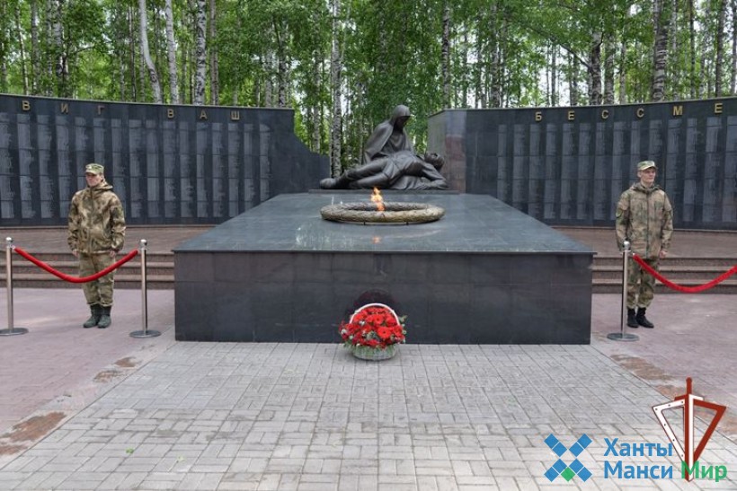 В Ханты-Мансийске росгвардейцы заступили на вахту памяти у Вечного огня Мемориала Славы в парке Победы.