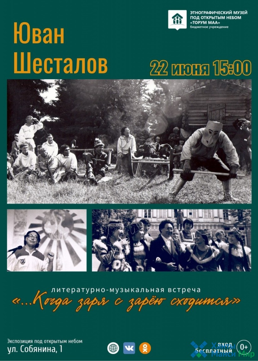22 июня 2023 года в 15:00 на экспозиции под открытым небом музея «Торум Маа» состоится традиционная ежегодная литературно-музыкальная встреча «…Когда заря с зарёю сходится», посвященная памяти мансийского поэта, прозаика, публициста – Ювана Шесталова.