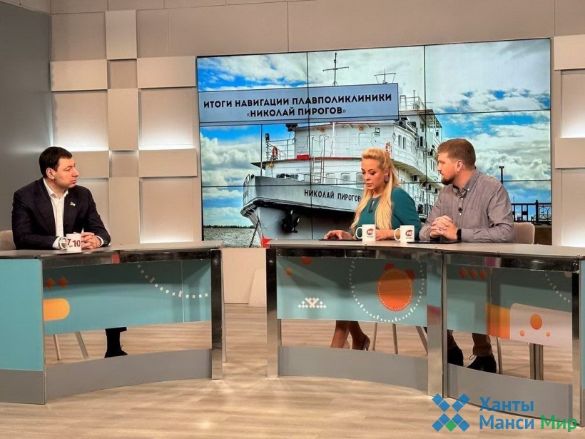 В прямом эфире парламентарий рассказал об итогах пятимесячной навигации плавполиклиники «Николай Пирогов» в сельские поселения региона и о строительстве новой плавполиклиники для автономного округа.