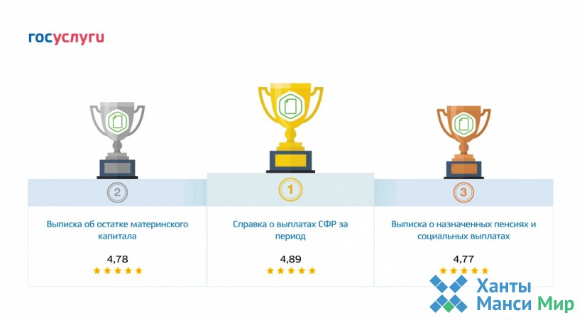 Тройку лучших сервисов закрывает выписка о назначенной пенсии и социальных выплатах (4,77 балла). По ней можно уточнить перечень установленных пенсионеру выплат, включая их актуальный размер, дату оформления и другие детали.