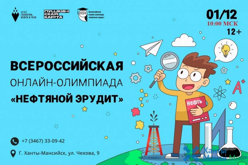 1 декабря 2023 г. в 10:00 по московскому времени Музей геологии, нефти и газа в г. Ханты-Мансийске совместно с Автономной некоммерческой организацией культурного просвещения и искусства «Культурные индустрии» проводит третью всероссийскую интернет-олимпиаду «Нефтяной эрудит». Регистрация уже началась, к участию приглашаются школьники с 6 по 11 класс.