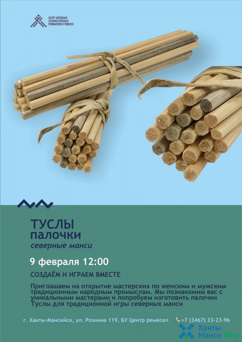 Центр народных художественных промыслов и ремесел Югры приглашает на открытие мастерских по женским и мужским традиционным народным художественным промыслам обских угров, которое состоится 9 февраля 2025 г. в 12.00 ч.