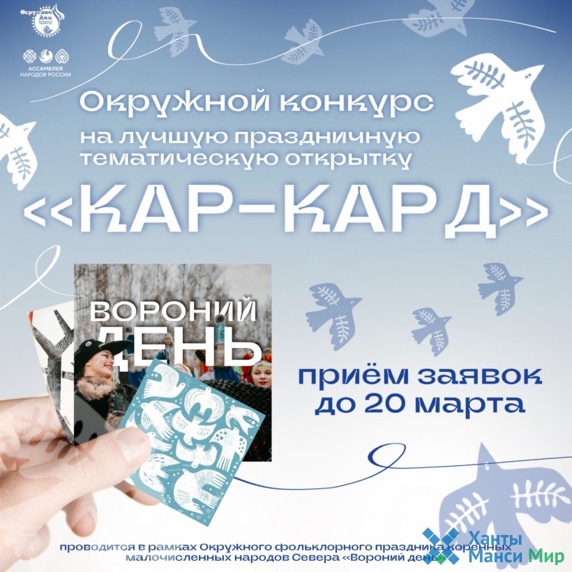 Возможно, именно ваша работа украсит серию почтовых открыток, изготовленных специально для самого почитаемого традиционного праздника ханты и манси – Вороньего дня.