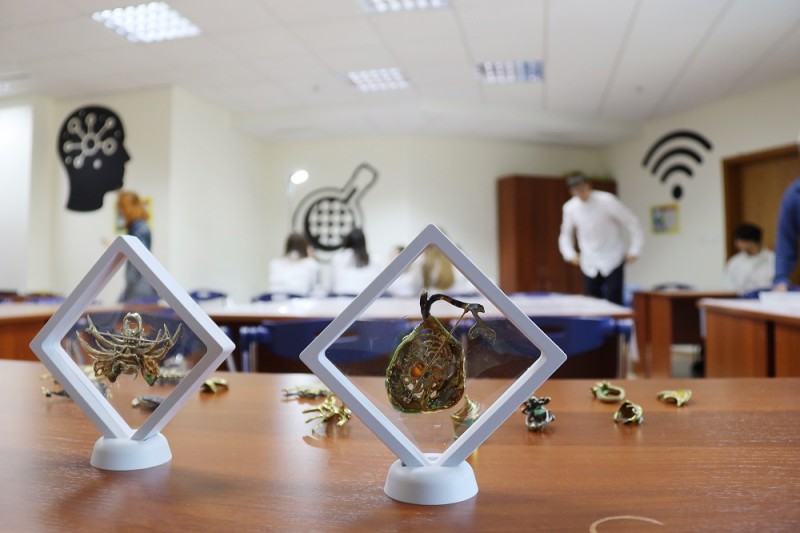 От теории – к практике: в продолжение мероприятия Ольга Береговая и Михаил Береговой провели творческие мастер-классы с использованием каменных заготовок и ювелирного воска. Под их руководством школьники познакомились с основами ювелирного мастерства: обработкой камня и созданием моделей колец из ювелирного воска. Стоит отметить, что заготовки, созданные участниками, будут отправлены в Екатеринбург для отливки в латуни на память. Мастер-классы УРГАХУ также стали частью проекта «Интеллектуальный потенциал университета – Родине».