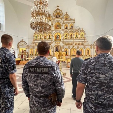 Вместе с прихожанами представители ведомства почтили память небесного покровителя Федеральной службы войск национальной гвардии Российской Федерации и поклонились его иконе.
