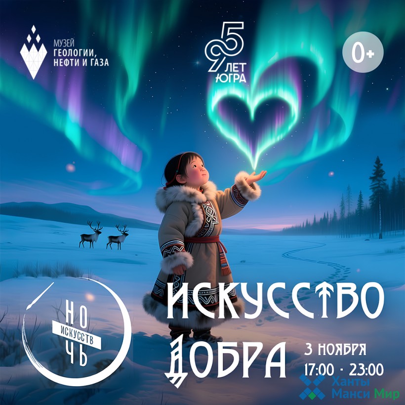 3 ноября Музей геологии, нефти и газа станет эпицентром добра и творчества в рамках всероссийской акции «Ночь искусств». В этом году мероприятие пройдет под символичным названием «Искусство добра», объединив гостей вокруг идеи особенной сибирской доброты, сотворчества и милосердия в честь 95-летия Югры.