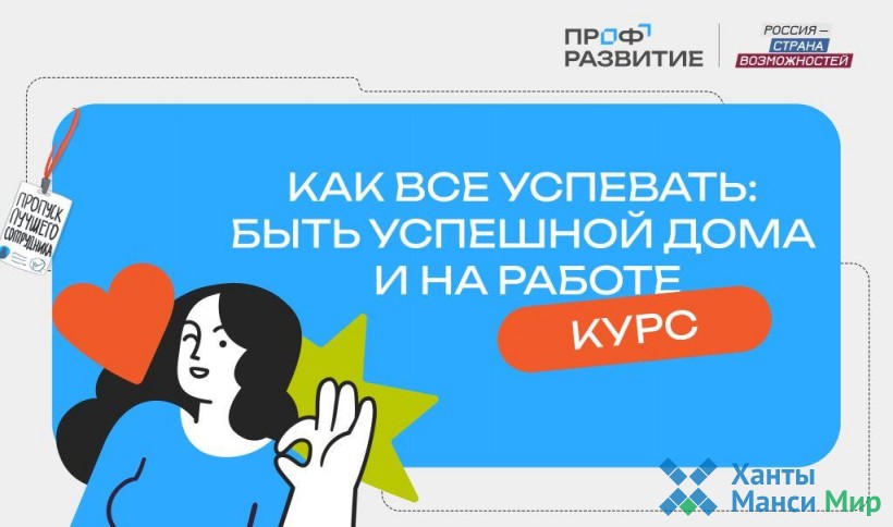 Проект «Профразвитие» Президентской платформы «Россия – страна возможностей» запускает образовательный курс для участниц из Ханты-Мансийского автономного округа – Югры – «Как все успевать: быть успешной дома и на работе». Он адресован студенткам и молодым специалисткам, но открыт для всех женщин – от будущих мам до тех, кто уже совмещает заботу о детях и карьеру. Курс позволит найти внутренний баланс между профессиональным развитием и материнством. Курс доступен по ссылке.