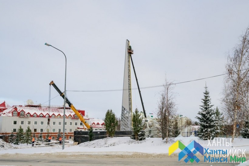 Губернатор Югры осмотрел ход работ по возведению стелы «Город трудовой доблести» в Ханты-Мансийске