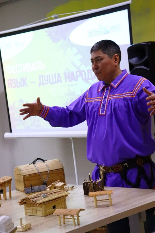 19 февраля заведующий сектором музейных программ и проектов БУ «Этнографический музей под открытым небом «Торум Маа» Вячеслав Кондин провёл насыщенный день в рамках мероприятий, направленных на популяризацию культуры коренных малочисленных народов Севера. Утром в Зеленоборской библиотеке он представил программу «Сказки Волшебного сундучка», погружающую зрителей в мир народных сказаний. Затем выступил с презентацией проекта «Музей на ладони» и представил сборников стихов о войне «Разбудит нас с тобою май» в Коммунистической библиотеке.