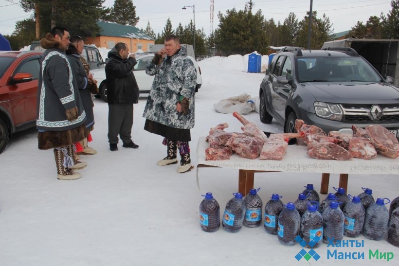 Проходила ярмарка, на которой можно было приобрести свежую оленину, рыбу, дикоросы и сувениры, изготовленные местными мастерицами-ханты.