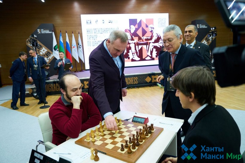 Губернатор Югры Руслан Кухарук не только поприветствовал гостей на первом дне турнира, но и лично сделал первый ход на первой доске. Он сыграл за армянского гроссмейстера Арама Акопяна, который встретился с венгром Беньямином Гледурой. Глава региона двинул пешку с поля Е2 на Е4. Партия, к слову, окончилась ничьей.