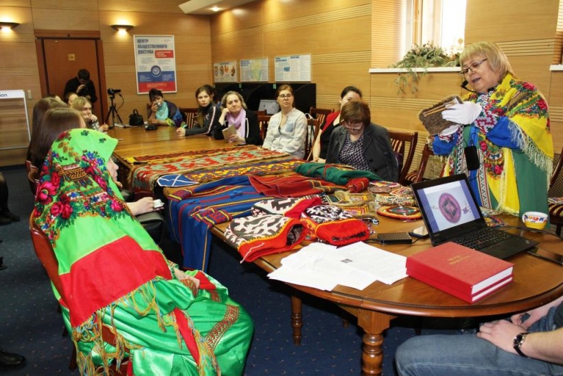 Получить достоверную информацию о традиционных изделиях из сукна обских угров пришли более 20 человек. Это учёные, студенты, журналисты, представители национальной интеллигенции, среди которых и «Народные мастера России» Мария Мерова, Мария Эккерт и Зоя Лозямова.