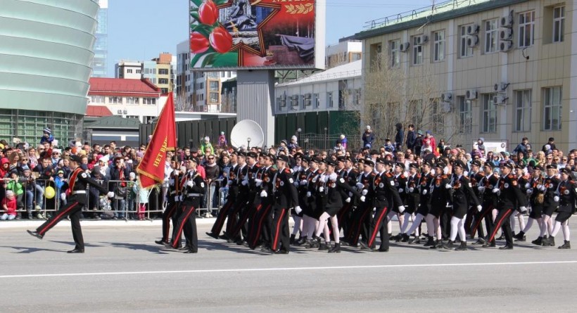 Сырыя вошӑӊ хӑннєхуятӑта тәс па хурамӑӊ военной парад ванӆтупсы вєрсы, хута итн-итн арсыр военизированной тӑхетн рәпитты ёх, Росгвардия, полиция, МЧС, юнармейцӑт муй кадетӑт шәшсӑт. Щи вєр хущи мєт вән кәщая генерал-майор Василий Романица тӑм пуӆяӊ вәс.