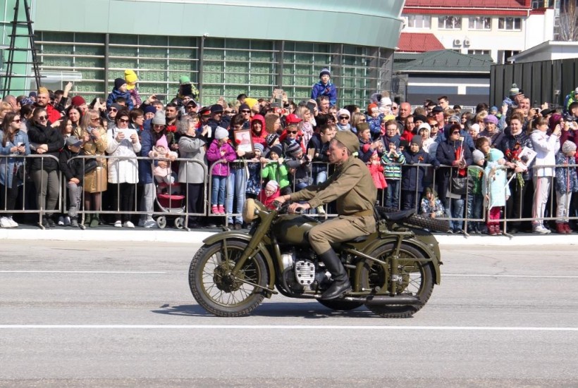 В завершение парада перед зрителями проехала техника времён Великой Отечественной войны. Жители города сами сумели увидеть легковой автомобиль «Виллис», предназначавшийся только для офицерского состава; мотоцикл с люлькой для моторизованной пехоты, знаменитые в те годы военного лихолетья гвардейский миномёт «Катюшу» и танк «Т – 34».